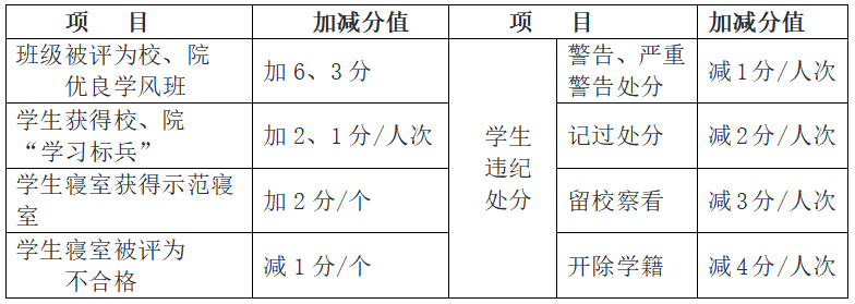 4.考核方式:考核方式分学生评议、学院评议、学工部评议、学校相关部门评议和绩效事件考评5个部分组成,学生评议和学院评议采用百分制量化计分考核。
