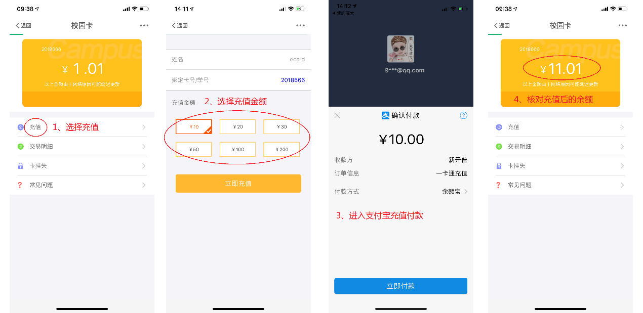 (2)人工充值。南校区4号楼会展中心一楼卡务办公室充值。