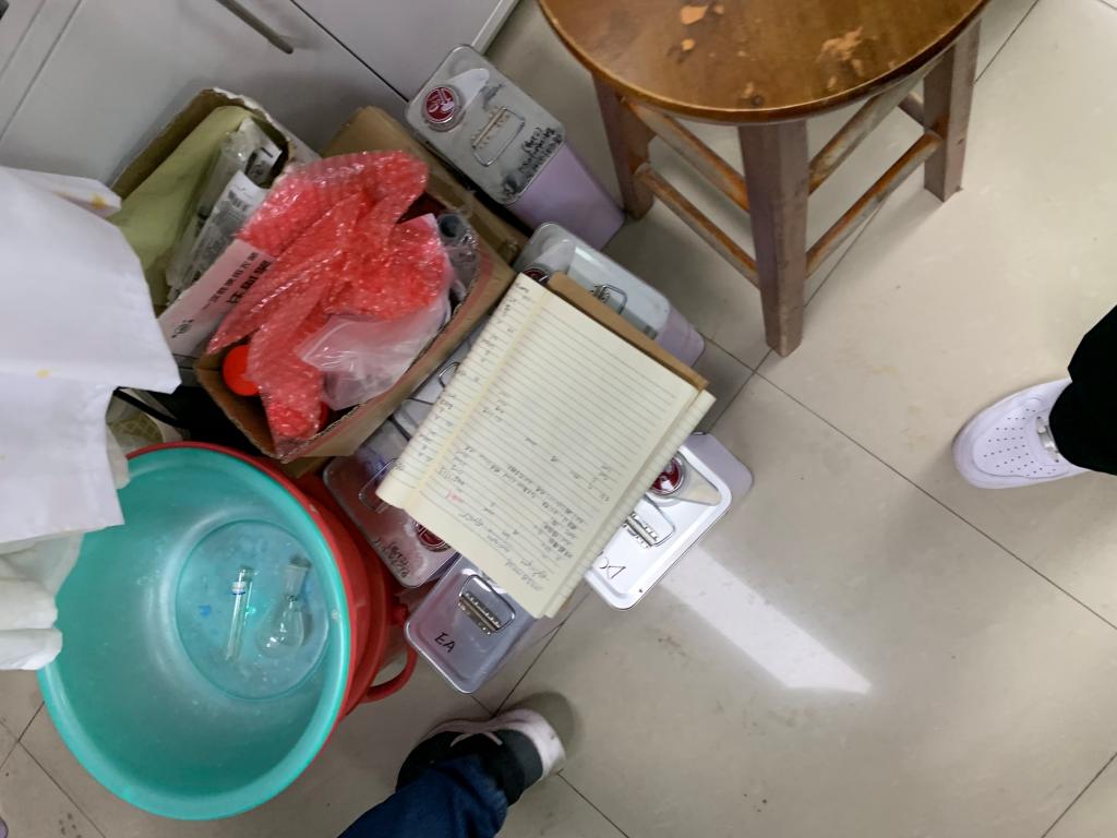 囤积过多试剂;地面卫生杂乱 |