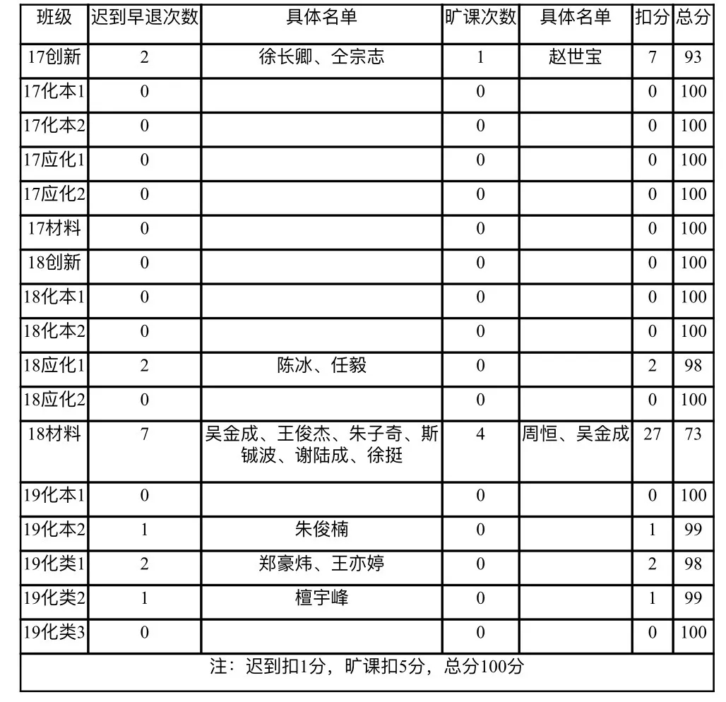 的学风建设、督促学生按时参与线上课程,现对2019-2020学年第二学期第十一周考勤情况进行通报。每天由各班负责人统计各科出勤情况并上报,最终一周的考勤情况于每周五进行汇总公布。