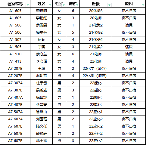 (4)若有学生检查期间未及时返回宿舍,于次日8点到16点之间由本人或委托人至年级辅导员处进行情况说明,逾期将对相关同学进行通报;