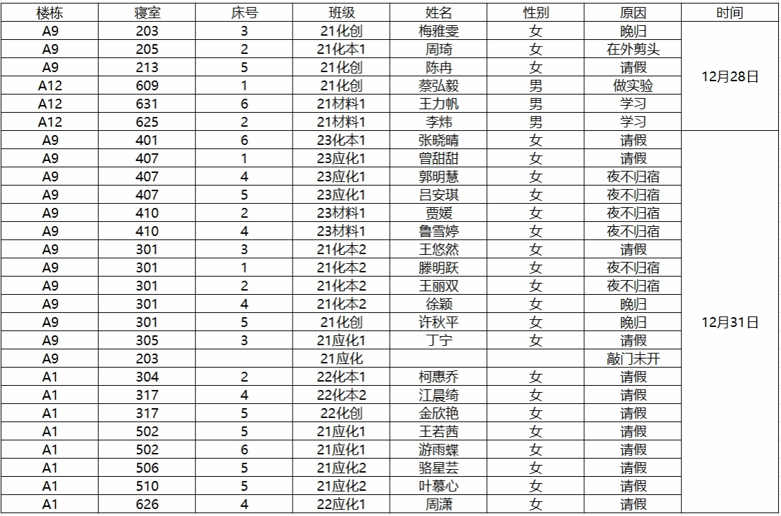 (2)若有学生在其他宿舍舍友可告知其返回核实;