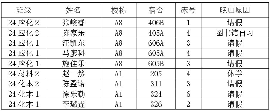 (2)若有学生在其他宿舍舍友可告知其返回核实;
