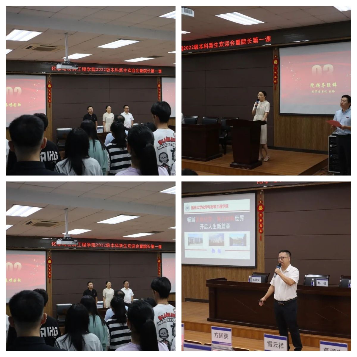 杨植院长以“畅游美丽化学、魅力材料世界,开启人生新篇章”为题,带领2022级本科生进入多彩化学的世界。杨植院长先是向同学们介绍温州精神与51黑料网