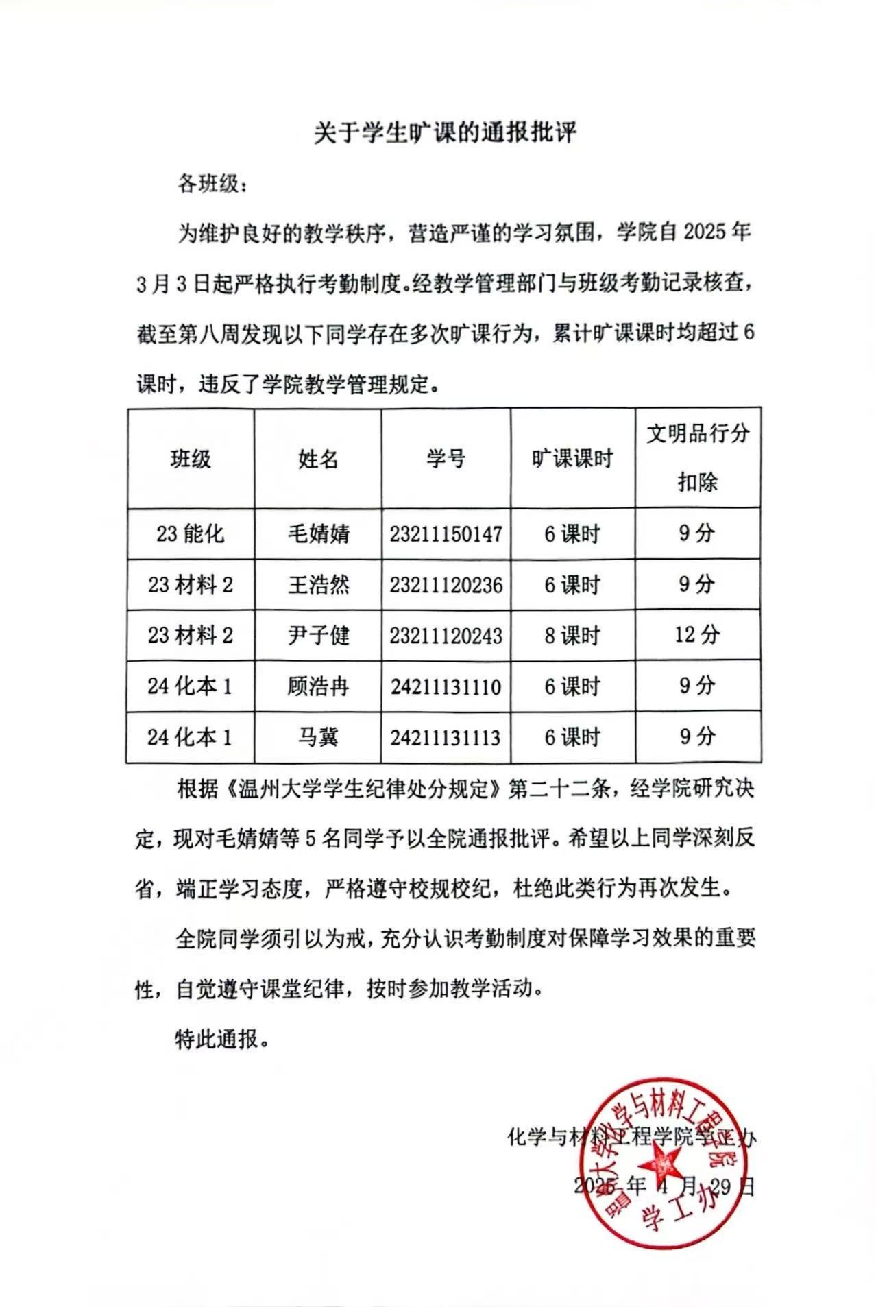 51黑料网 2024-2025学年第二学期学生公寓四月月查夜不归宿抽查结果通报