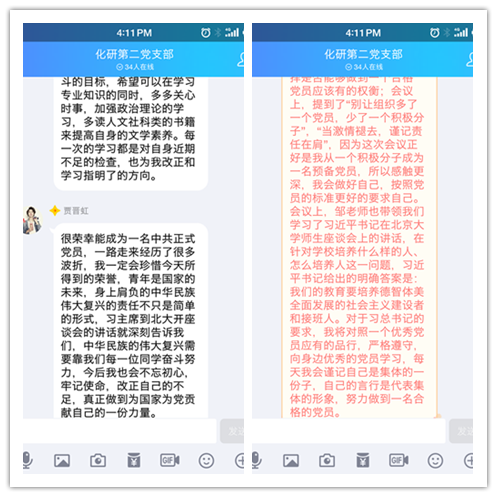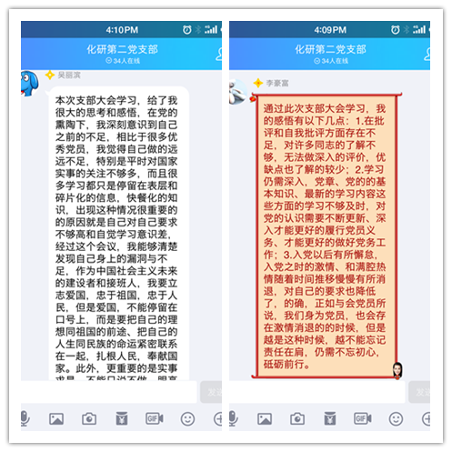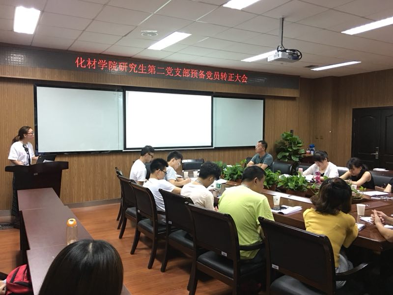 研究生第二党支部在化材楼11B-204室召开预备党员转正大会,大会主要讨论贾晋虹、王翻同志由预备党员转为正式党员的问题,参与本次大会的有研究生辅导员邹涌彬老师,研究生第二党支部全体党员、预备党员。本次大会由研究生第二党支部书记李鸿辰主持。