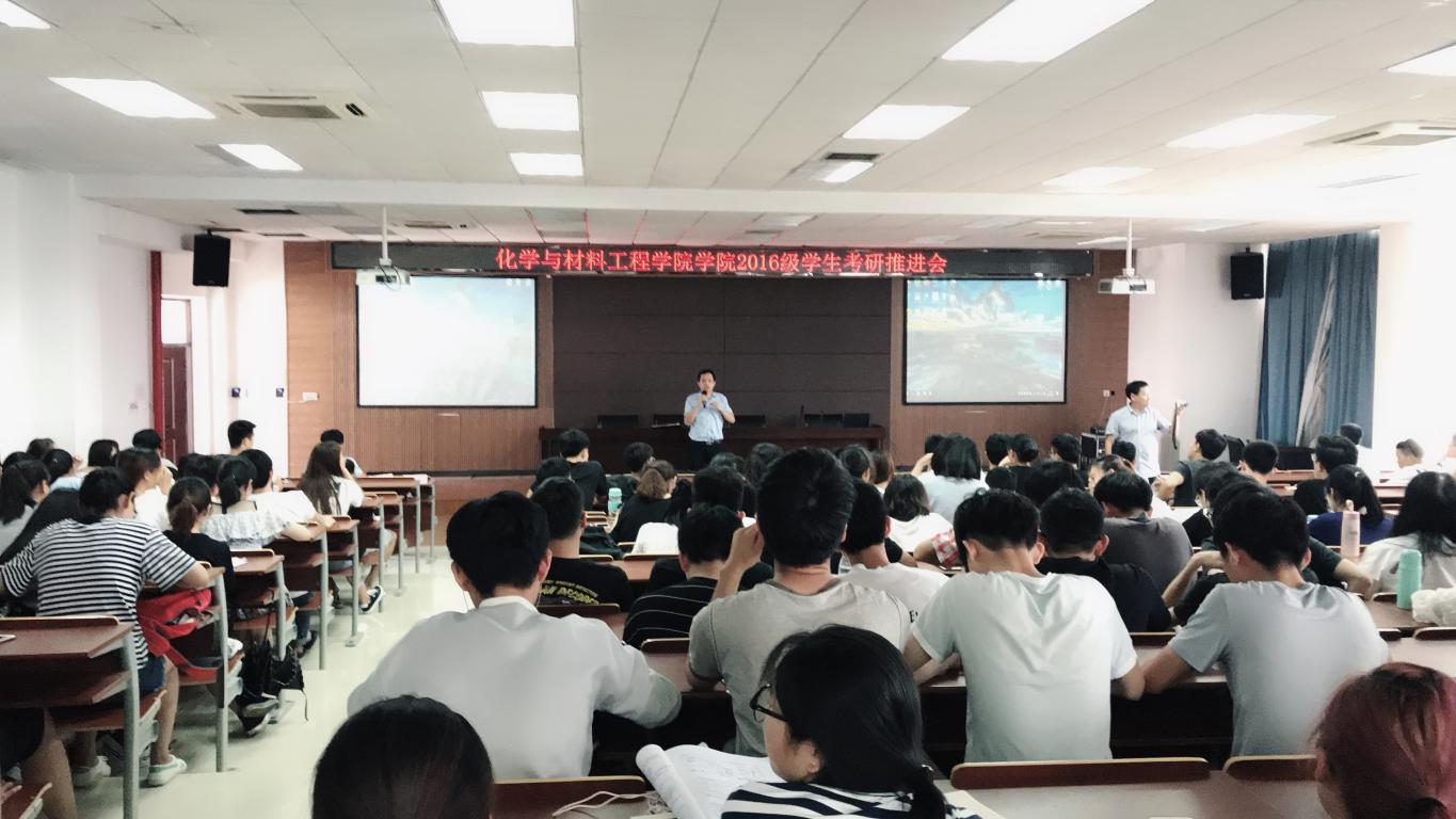 在11号楼C401召开2016级考研工作推进会。学院党委书记潘从义、退休教师张力学、学生科副科长易招娣、辅导员邹涌彬等参加会议。