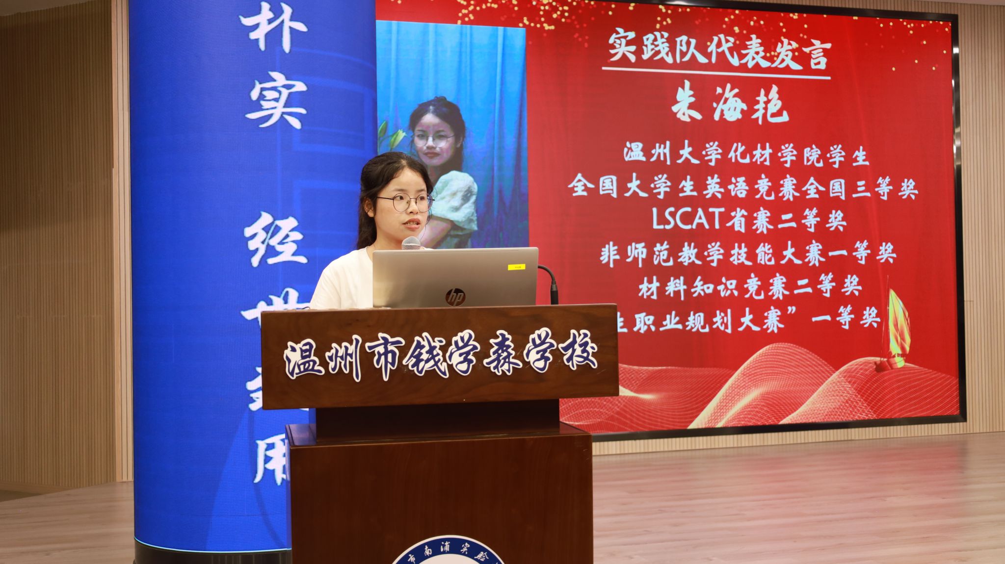 He-406暑期社会实践队队员代表朱海艳向在场营员介绍了实践队的活动特色、师资队伍、课题方向、实验安排等,让营员对实践队有了更加全面和深入的认识。
