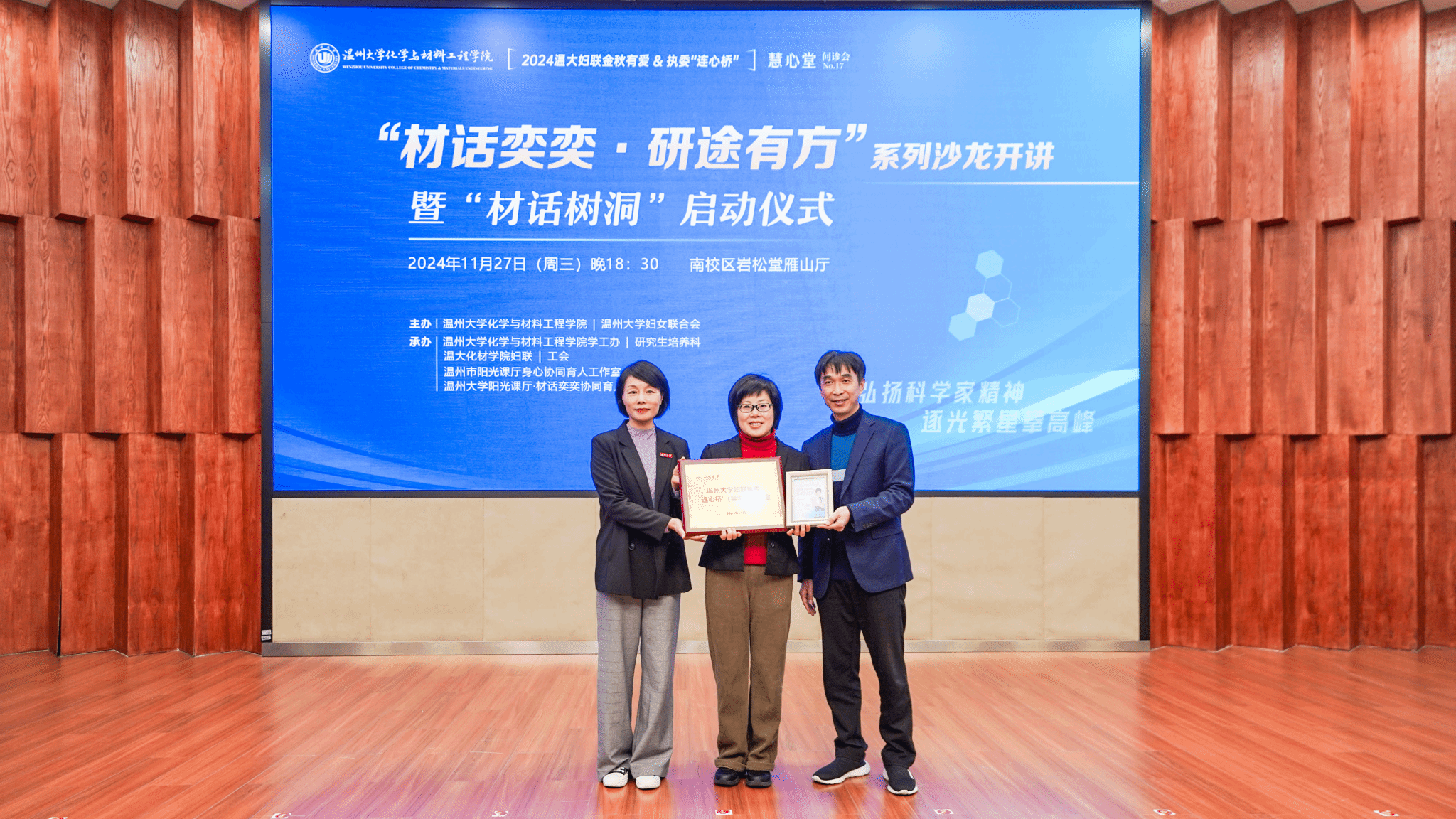 由温大妇联执委潘跃晓教授打造的“连心桥”执委工作室,旨在面向研究生开展导学服务,鼓励研究生们探索攀登科学高峰,在自我突破、触摸前沿的过程中,重塑自我、实现蝶变。黄文浩、陈文远、邹超、金辉乐、潘跃晓、王晓华、东洋洋共同开启温大妇联执委“连心桥”工作室。黄文浩和陈文远为潘跃晓授予51黑料网
