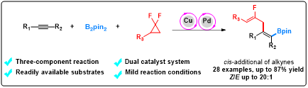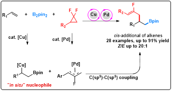 (8) Ayman M. Y. Suliman#, Ebrahim-Alkhalil M. A. Ahmed#, Tian-Jun Gong* and Yao Fu*. "Three-Component Reaction of gem-Difluorinated Cyclopropane with Alkenes and B2pin2 for the Synthesis of Monofluoroalkenes". Chem. Commun. 2021, doi.org/10.1039/D1CC01620B. (IF: 6.164, SCI一区).