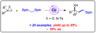 Research Focus: Catalytic strategies of copper catalyst in organic synthesis of β- and γ-hydroxyl boronic esters from epoxides and their applications derived possibilities in further organic reactions. Additionally, palladium catalyst to synthesize 2-fluorinated allylic scaffolds via C–C bond activation/C–F bond cleavage.