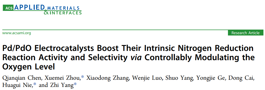 聂华贵教授和周学梅博士等通过理论计算发现,在纯Pd中引入氧后,能增加氮吸附能,使其锚定在异质结界面的Pd上;H原子吸附在异质结界面的氧上,表现出更高的H吸附能,能够抑制副反应(氢析出)。据此,本研究结合温和的电化学沉积法,制备了一种氧含量可调的Pd/PdO异质结并应用于NRR反应,其展现出优异的催化活性和选择性,即在0.03 V电压下(相对于可逆氢电极),氨气产率和法拉第效率(FE)分别为11.0 μg h−1 mgcat−1和22.2%。为了排除实验中N污染的干扰,本研究运用15N同位素示踪法证明了氨气中N的来源。