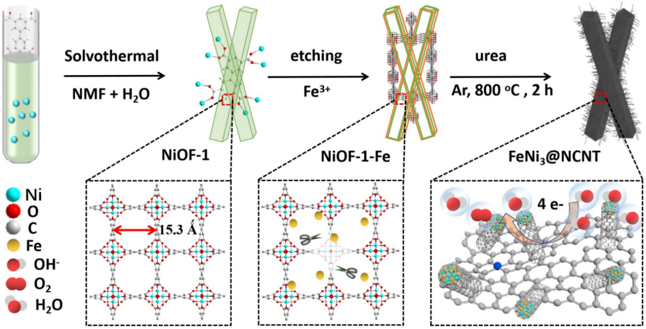 图1. FeNi3@NCNT高效OER催化剂的合成路线。