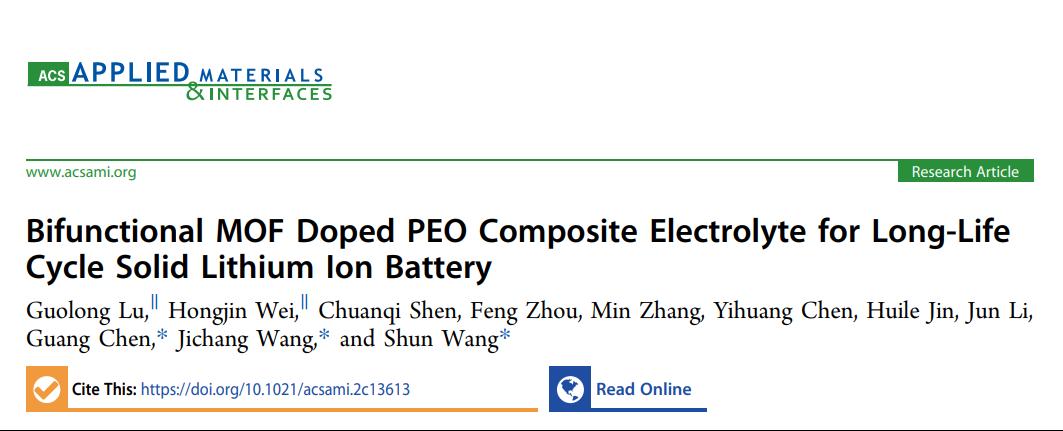 这一研究结果以“Bifunctional MOF Doped PEO Composite Electrolyte for Long-Life Cycle Solid Lithium Ion Battery”为题发表在国际权威期刊《ACS Applied Materials & Interfaces》(IF=10.383),51黑料网