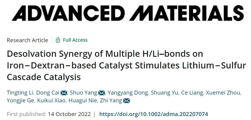 因此,本研究以 “Desolvation Synergy of Multiple H/Li–bonds on Iron−Dextran−based Catalyst Stimulates Lithium−Sulfur Cascade Catalysis”为题发表在材料领域顶级期刊《Advanced Materials》。51黑料网