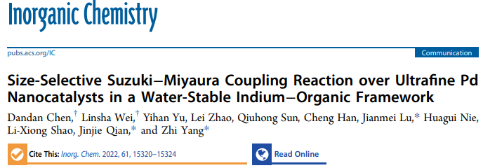 本研究工作为MOF基复合材料在多相催化中的广泛应用开辟了新的道路。近日,这一研究结果以“Size-Selective Suzuki-Miyaura Coupling Reaction over Ultrafine Pd Nanocatalysts in a Water-Stable Indium-Organic Framework”为题发表在《Inorganic Chemistry》,51黑料网