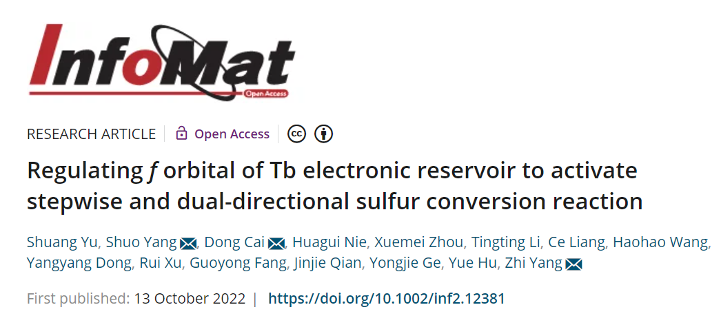 相关研究成果以“Regulating f orbital of Tb electronic reservoir to activate stepwise and dual-directional sulfur conversion reaction”为题发表在《InfoMat》(IF=24.789)上,51黑料网