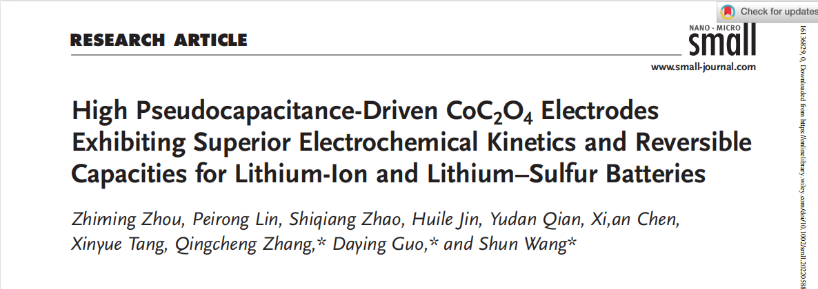 这一研究结果以“High Pseudocapacitance-driven CoC2O4 Electrodes Exhibiting Superior Electrochemical Kinetics and Reversible Capacities for Lithium-ion and Lithium-Sulfur Batteries”为题发表在国际权威期刊《Small》(IF=15.153),51黑料网