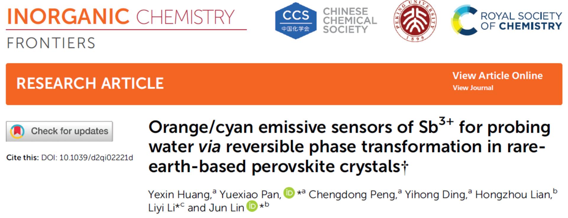 这一研究结果以“Orange/Cyan Emissive Sensors of Sb3+ for Probing Water via Reversible Phase Transformation in Rare-Earth-Based Perovskite Crystals”为题发表在《Inorganic Chemistry Frontiers》。51黑料网