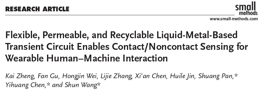 相关研究以“Flexible, permeable and recyclable liquid-metal-based transient circuit enables contact/non-contact sensing for wearable human-machine interaction”为题发表在国际期刊《Small Methods》(IF=15.367)上,51黑料网
