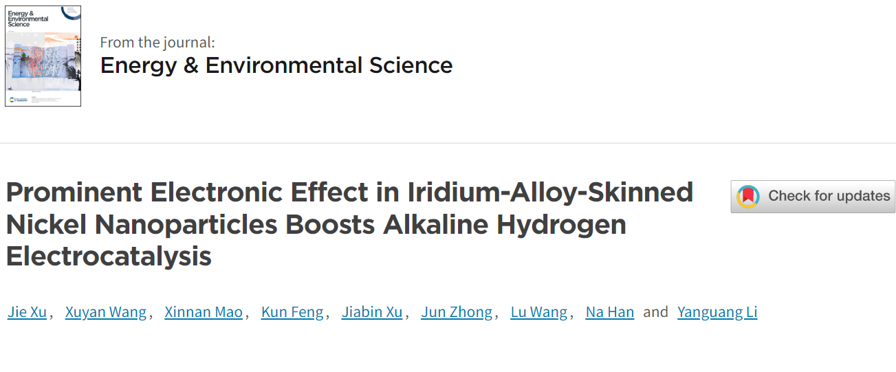 “Prominent electronic effect in iridium-alloy-skinned nickel nanoparticles boosts alkaline hydrogen electrocatalysis. //pubs.rsc.org/en/content/articlelanding/2023/ee/d3ee02382f.