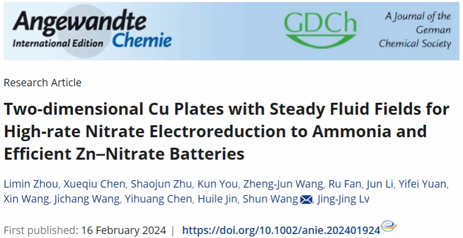 该成果以“Two-dimensional Cu Plates with Steady Fluid Fields for High-rate Nitrate Electroreduction to Ammonia and Efficient Zn–Nitrate Batteries”为题发表在Angewandte Chemie International Edition期刊(IF=16.6,SCI一区)上。51黑料网