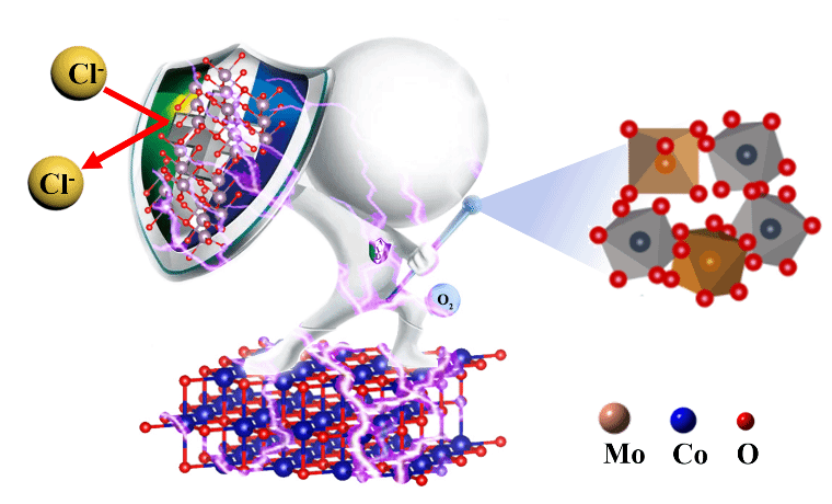 直接海水电解制氢是将太阳能、风能和潮汐能等间歇性能源转化为化学能的有效方法之一。然而,一般催化剂容易在OER高过电位下引发催化剂与高活性新生中间体(如O*、HO*和HOO*)之间的自重组反应。在这个过程中,催化剂的表面被重建,在电势范围内形成羟基金属氧化物,这被认为是OER的“真正催化剂”。然而,这种连续而无序的重建过程对稳定催化剂的结构是致命的,特别是海水电解质的高度腐蚀,最终会导致大多数催化剂严重失活。此外,由于海水中存在着大量的氯离子(Cl-)与OER产生竞争。综上所述,如何控制催化剂重构过程以避免深度重构引起的相分离,以及开发具有选择性抑制CER和屏蔽海水中杂质的OER催化剂,已成为大规模直接海水电解的关键挑战。