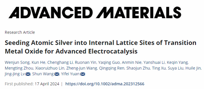 王舜/袁一斐/吕晶晶教授课题组在国际顶级期刊《Advanced Materials》发表题为“Seeding Atomic Silver into Internal Lattice Sites of Transition Metal Oxide for Advanced Electrocatalysis”的论文。该工作利用隧道结构的α-MnO2作为基底,将Ag原子链引入α-MnO2隧道内部,并且在MnO2表面通过共享晶格外延生长负载了Ag纳米颗粒,从而制备了双位点Ag催化剂。通过开发过渡金属氧化物晶格内部的催化剂负载位点,可以大大增加基底的催化活性中心,提高电催化二氧化碳还原的效率,并且隧道内部的催化剂由于金属离子-基底间的协同作用,导致其中间反应过程中的能垒显著降低。更重要的是,MnO2对内外的Ag催化剂物种均具有很强的约束作用,可以抑制Ag的团聚,从而提高催化剂的循环寿命。