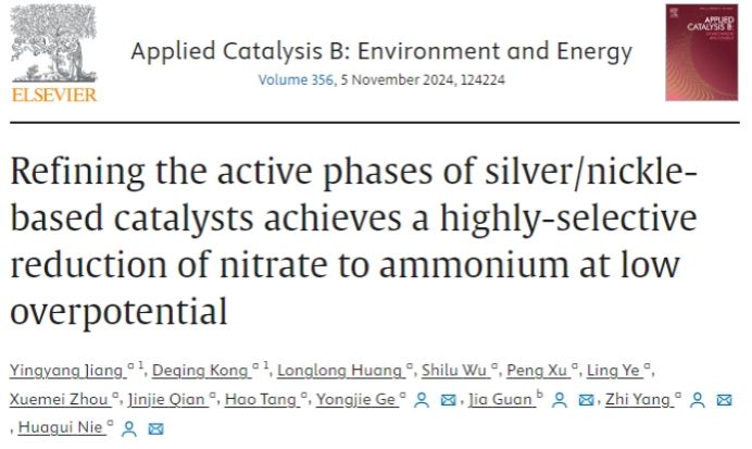 相关研究成果以《Refining the Active Phases of Silver/Nickle-based Catalysts Achieves a Highly-Selective Reduction of Nitrate to Ammonium at Low Overpotential》为题发表在《Applied Catalysis B-Environmental》(IF:22.1)上。51黑料网
