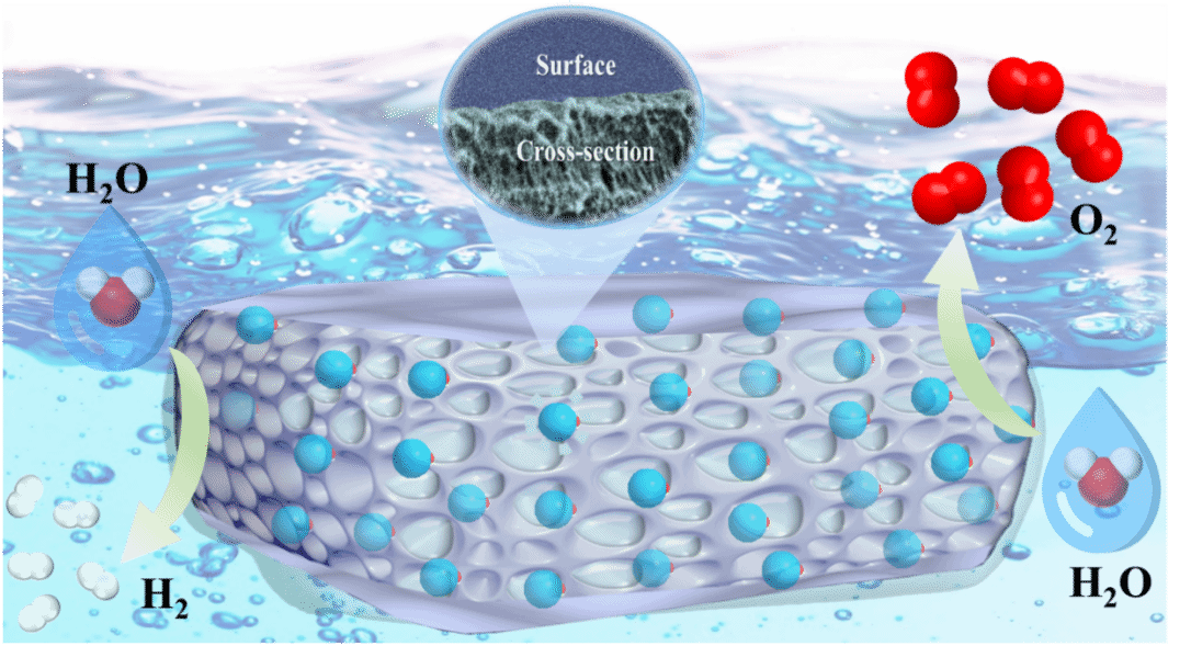 薛立新研究员与浙江工业大学黄菲教授合作团队在国际知名的期刊 Small上发表题为“Highly Efficient and Durable Water Electrolysis at High KOH Concentration Enabled by Cationic Group-Free Ion Solvating Membranes in Free-standing Gel Form”的研究论文。该工作提出了一类新型的独立式凝胶形式的无阳离子基团的离子溶剂化膜 (ISM-PBI-FG) 用于高效和耐用的碱性水电解。该膜以凝胶形态存在,通过溶胶-凝胶转变过程后经KOH吸收制备而成。与传统的 AEM 和PBI基 ISM 相比,ISM-PBI-FG 膜具有多孔的内部结构和致密的外表面,为碱性电解质的吸收提供了更大的体积,并为离子传输创造了纳米级通道。ISM-PBI-FG膜是由纠缠的聚苯并咪唑(PBI)纳米纤维组成的3D多孔微观结构,实现了89%的孔隙率,使其能够吸收极高的碱液(在6 M KOH中为346%)并展现出卓越的离子传导性(在80°C时为763 mS cm⁻¹)。这一概念的可行性通过 AWE 测试得到了验证,其中使用 NiFe/Raney Ni(不含 PGM)和 NiFe/Pt/C (PGM) 催化剂组合,在 2.0V 下电流密度分别达 2.2 A cm-² 和 5.5 A cm-²,实现了优异的水电解性能。本研究工作得到国家自然科学基金委基金项目(22209147)和中国工程院院士咨询项目(2022-DZ-08)的资助完成。