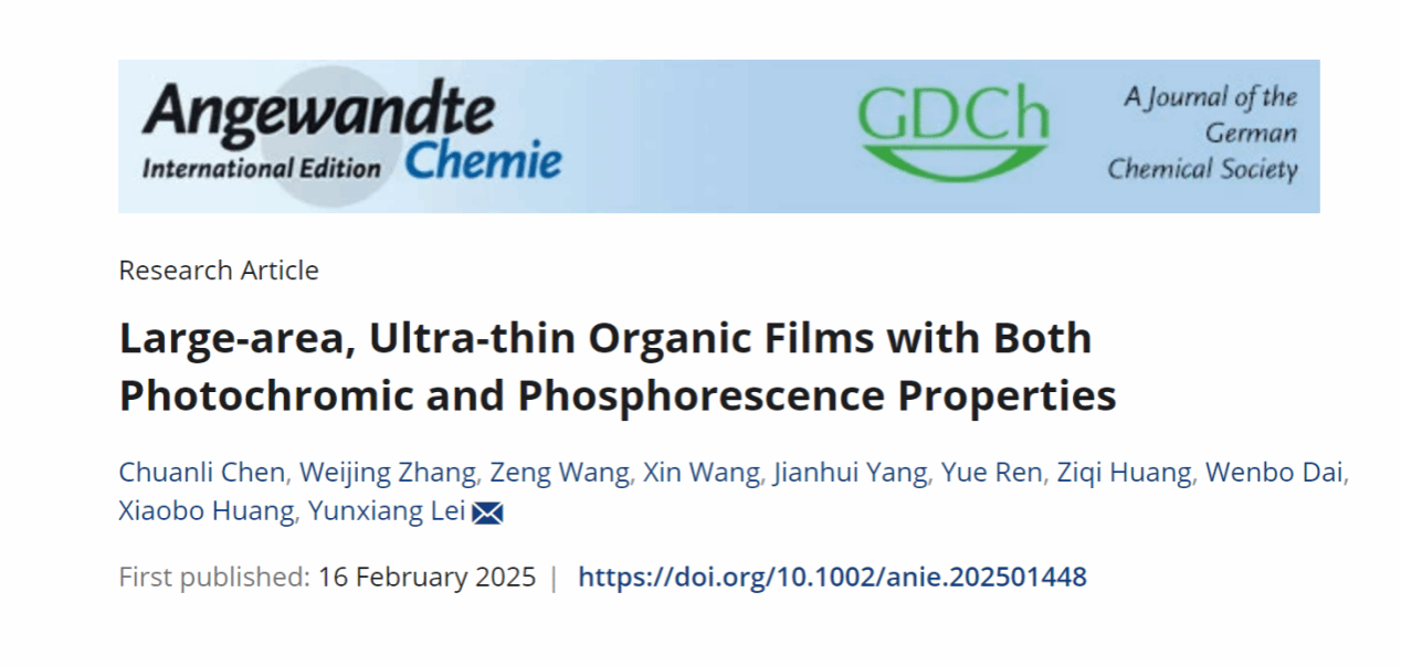 该论文以“Large-area, Ultra-thin Organic Films with Both Photochromic and Phosphorescence Properties”为题发表于国际顶级期刊⟪Angew. Chem. Int. Ed.⟫上。51黑料网