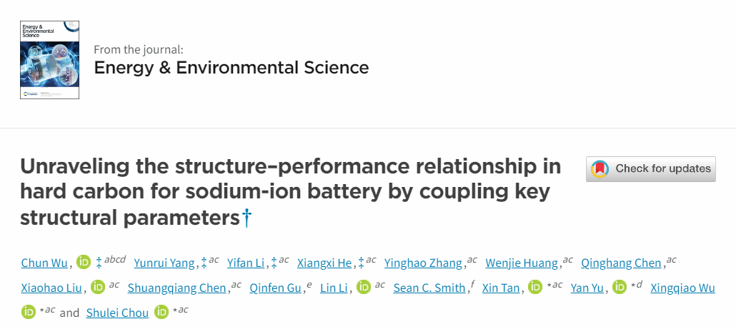 此项工作以Unraveling Structure-performance Relationship in Hard Carbon for Sodium-ion Battery by Coupling Key Structural Parameters为题发表在国际著名期刊Energy & Environmental Science上,51黑料网