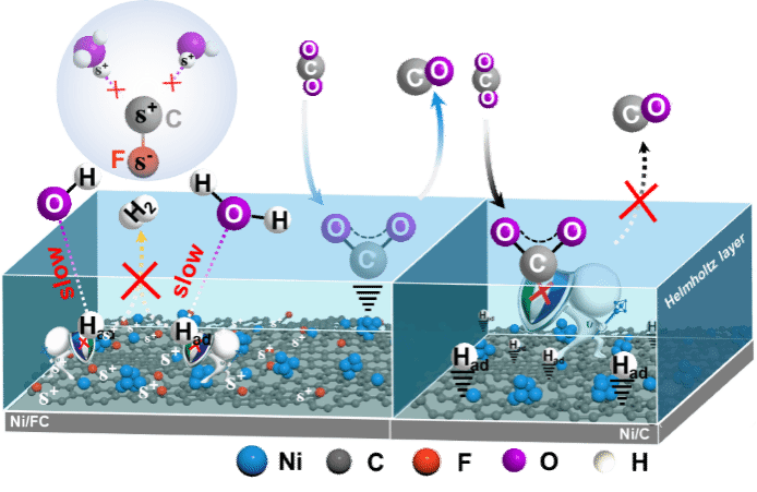 图1. CO2RR过程中的Ni/FC和Ni/C示意图