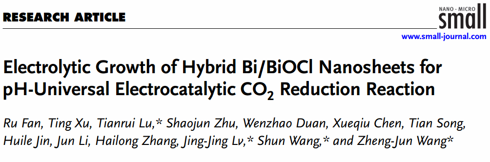 该成果以“Electrolytic growth of hybrid Bi/BiOCl nanosheets for pH-universal electrocatalytic CO2 reduction reaction”为题发表在Small期刊(IF=12.1)上。51黑料网