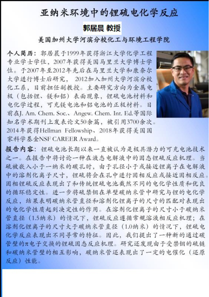 第一百三十五期瓯江学术论坛预告- 美国加州大学河滨分校 郭居晨 教授