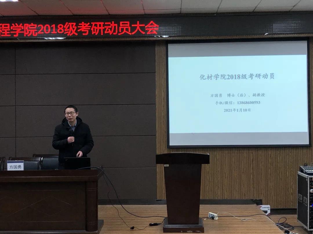 学院在学生大三学年的第一学期末开展考研动员大会,以此鼓励当届学生考研、积极准备考研复习,把握寒假时间早做准备,并在大会最后环节,通过师生互动交流的方式,一对一解决学生对考研方面的疑惑。