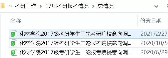 学院每隔一段时间就会进行调研,通过问卷星调查形式,统计学生是否考研、收集报考学校和报考专业。通过分析前后几次调研的结果,找出变化之处并及时向同学了解变化的原因。另外及时收集学生参加考研辅导班的意愿情况以及对考研辅导的需求,并后续组织学生参加。考研初试结束后,及时向学生收集考研结果信息,并跟进了解学生的复试准备情况。