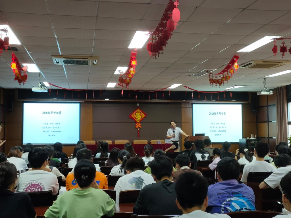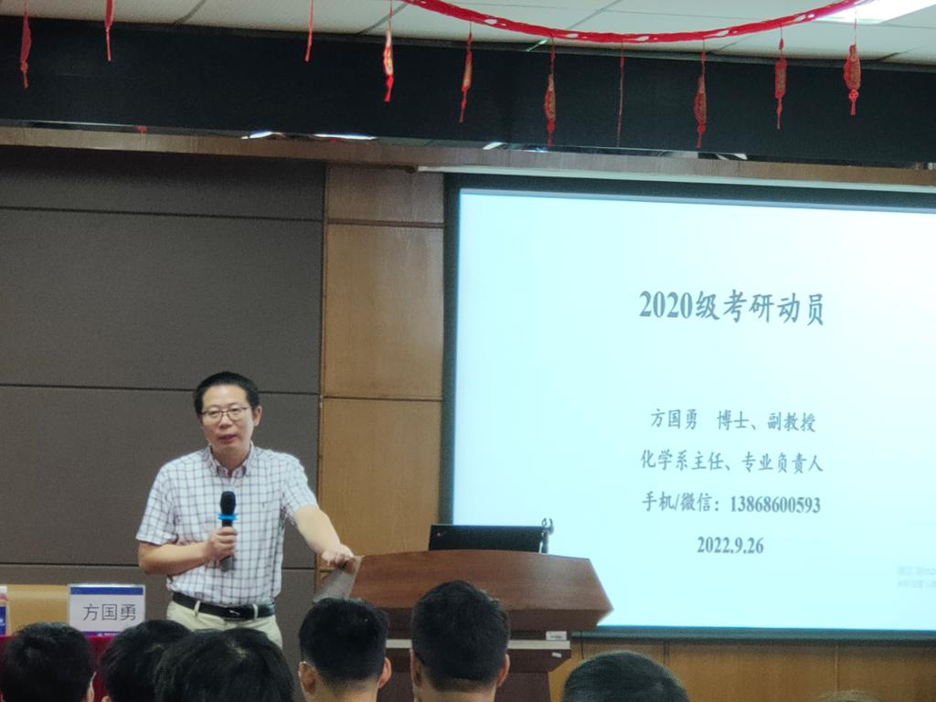 208会议室举办了2020级学生考研动员大会。特邀请化学系主任方国勇老师为学生讲解。