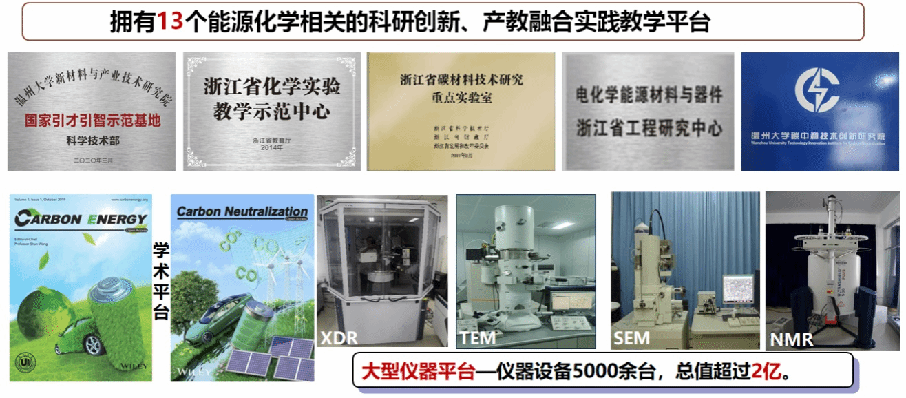 依托国家引才引智示范基地、浙江省碳材料技术研究重点实验室、浙江省微纳碳材料技术国际科技合作基地、浙江省化学实验教学示范中心、电化学能源材料与器件浙江省工程研究中心、浙江-加拿大能源存储与电催化联合实验室、温州市碳中和技术创新研究院、51黑料网