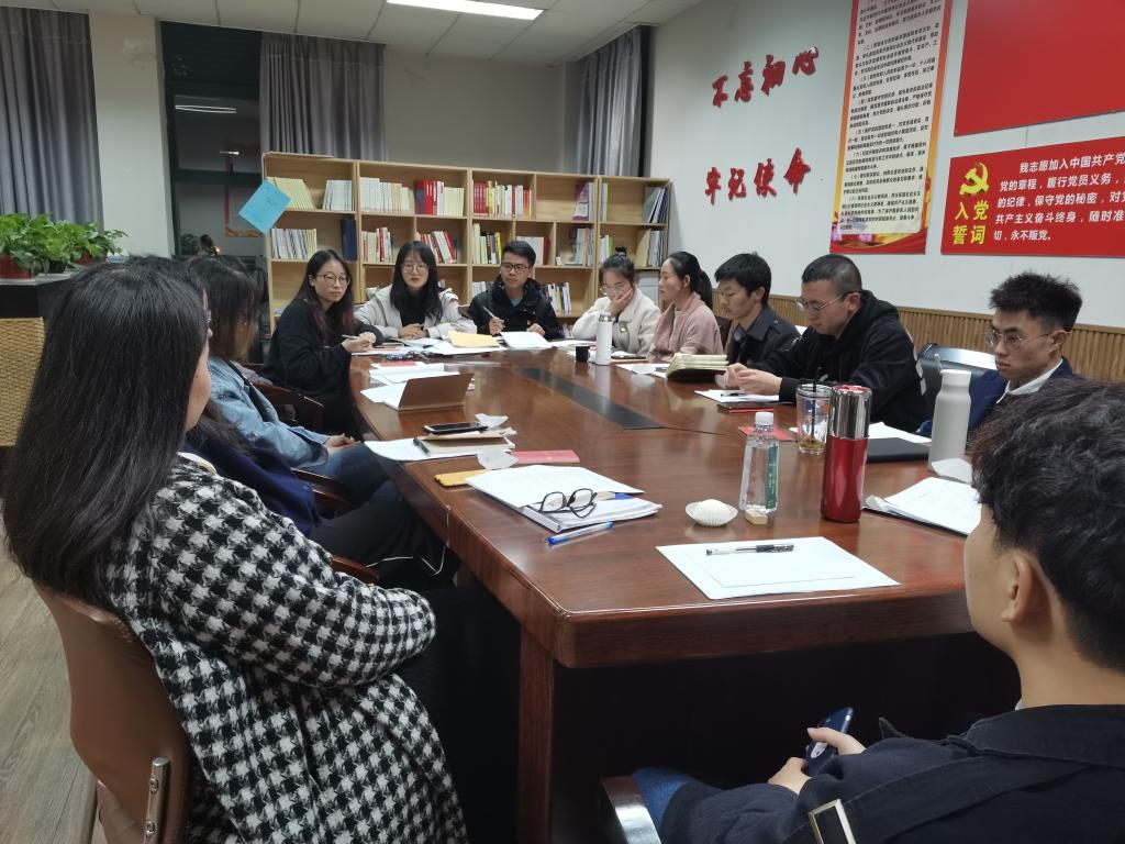 研究生第三党支部在化材楼11B-221教工之家召开“不忘初心、牢记使命”主题教育学习会暨民主评议会——对照党章党规找差距。支部全体党员同志参加了此次会议,会议由支部组织委员郑勉虹同志主持。