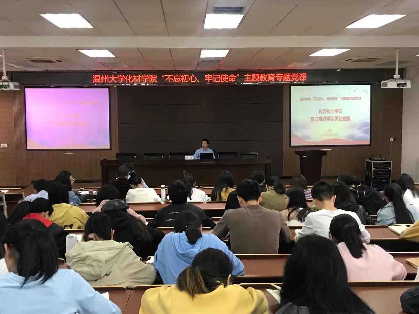 此次活动的主题是“践行初心使命,奋力推进学院事业发展”。主讲人是学院党委书记熊琳。本次专题熊书记围绕“回顾光辉历程,深刻理解我们党的初心使命”、“立足本职工作,准确把握高等教育初心使命”、“践行初心使命,奋力推进学院事业跨越发展”三个方面展开讲述。熊书记强调我们要不忘中国共产党人的初心和使命,时刻为人民谋幸福为民族谋发展。