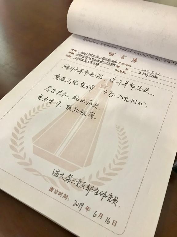 研究生第三党支部开展了以“重温历史、不忘初心、牢记使命”为主题的党日活动,全体党员同志参观了位于温州市区江心屿的温州革命历史纪念馆和温州革命烈士纪念馆——浙江省爱国主义教育基地、党史文化教育基地。