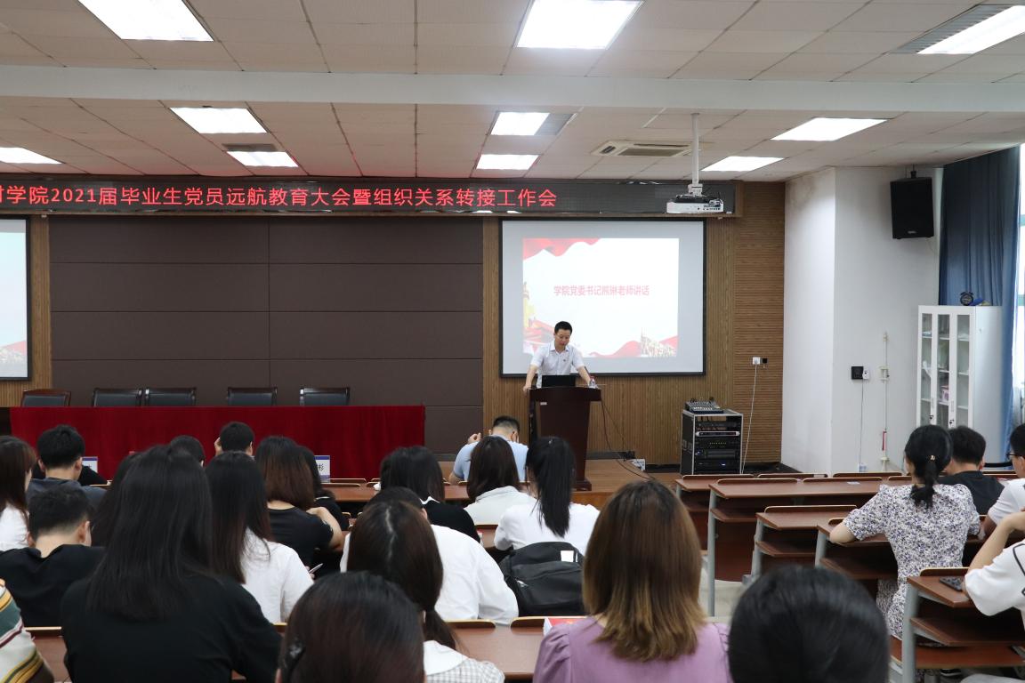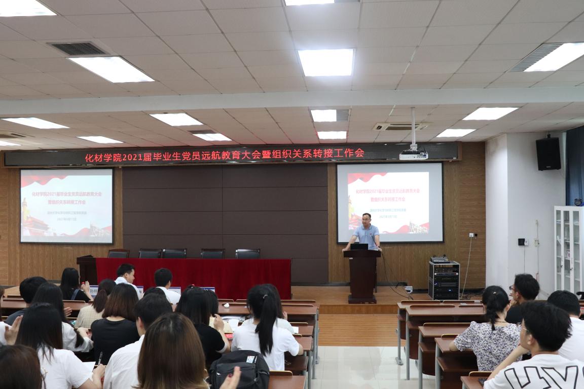 在11C401召开了2021年毕业生党员远航教育大会暨组织关系转接工作会,学院党委书记熊琳老师,副书记周敬业老师,学院学工办副主任孙玮玮老师出席会议,会议由学院党建辅导员邹涌彬老师主持。