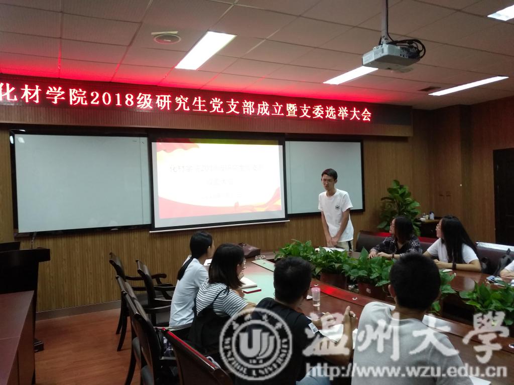 2018级研究生党支部成立大会暨支委选举大会在化材楼11B204会议室召开。研究生党建指导老师邹涌彬以及党支部全体党员参加了大会,会议由邹涌彬老师主持。