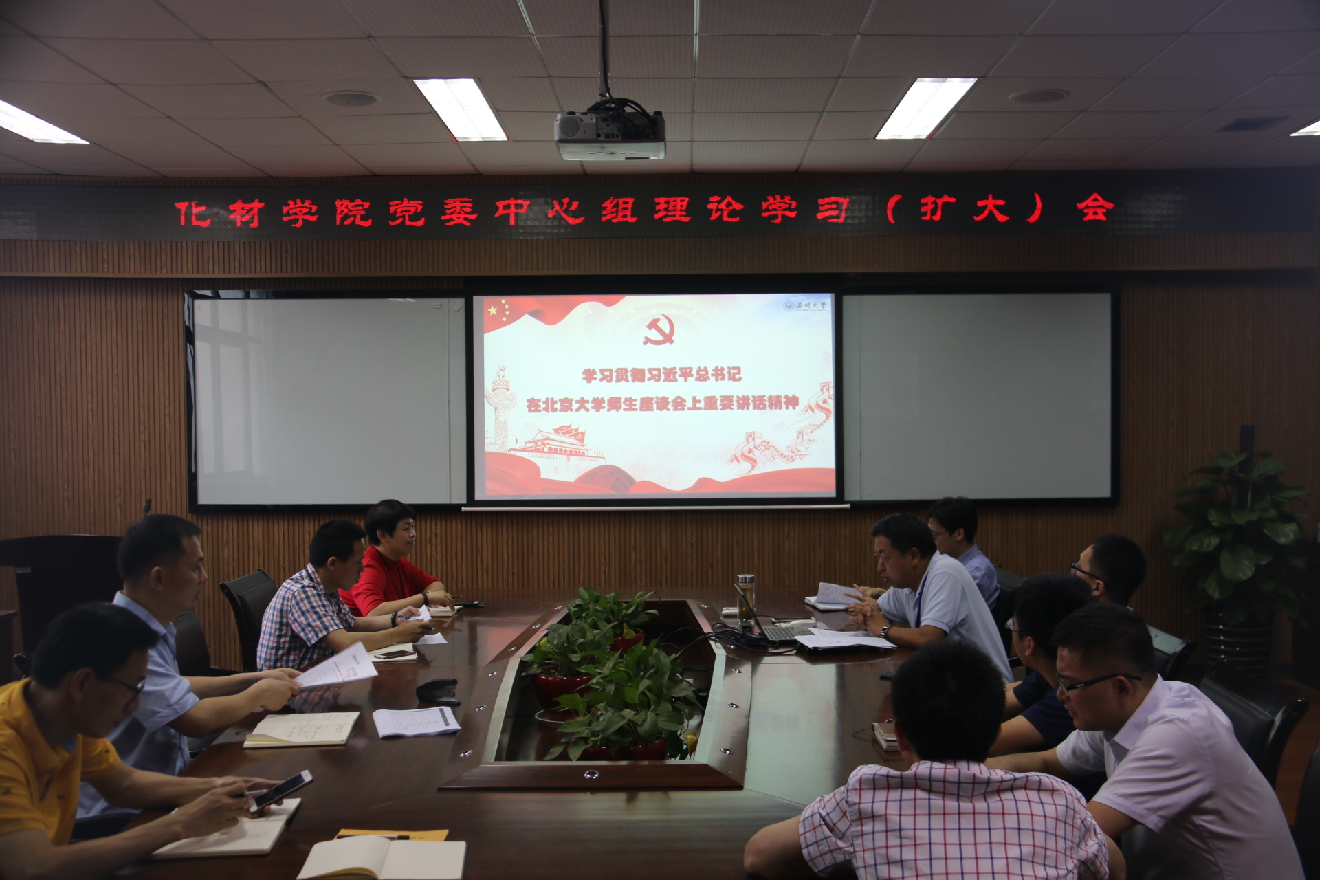 召开党委中心组理论学习(扩大)会,学习贯彻习近平总书记在北京大学师生座谈会上的重要讲话精神。学院领导班子成员、学院党委委员、各教工支部书记、各系正副主任,以及各科室、各平台、实验中心相关同志参加了学习,会议由方乐平书记主持。
