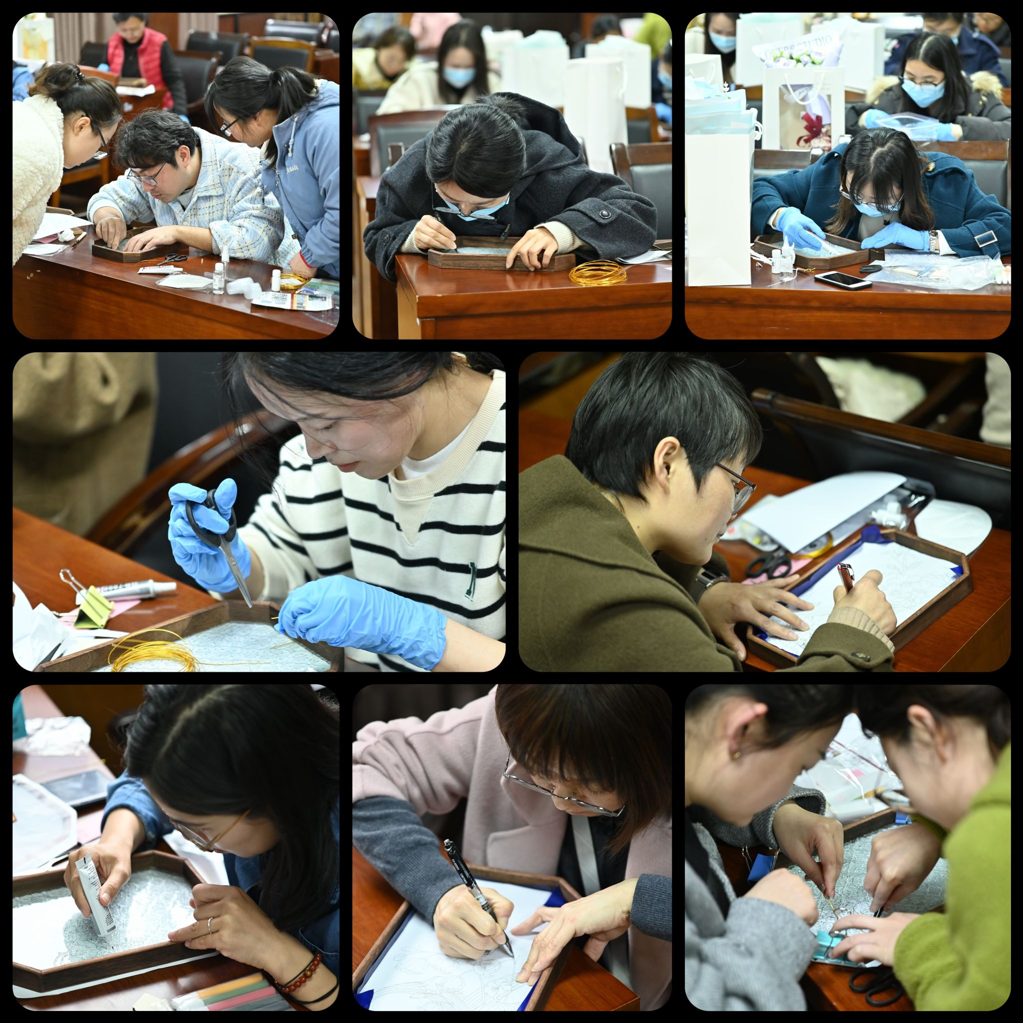 阳春三月,万物复苏。3月7日下午,学院分工会、妇联联袂打造“传承非遗技艺·凝聚巾帼力量”主题活动,在学院208会议室和人才之家举办非遗掐丝珐琅工艺体验活动。五十余位女教师巧手翻飞间,将千年非遗技艺化作献给自己的节日礼物,学校妇联主席刘吟老师与女教职工们共度文化馨香满溢的春日时光。