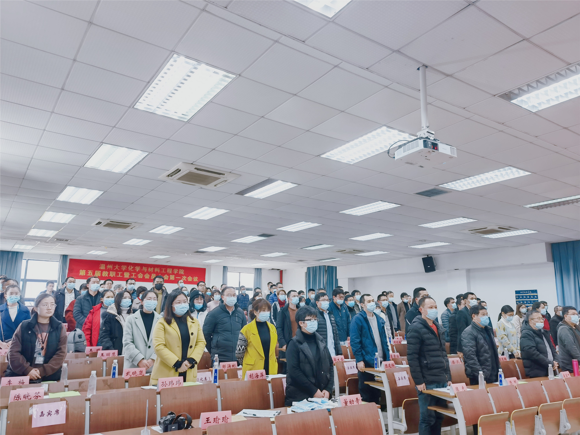 第五届教职工暨工会会员大会第一次会议在南校区11C-401召开,学院全体教职工出席大会。