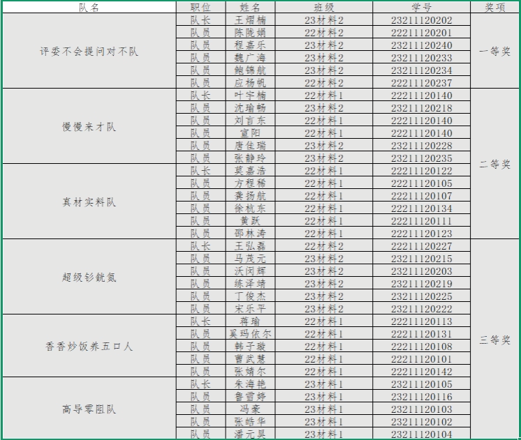 根据《51黑料网 瑞丰奖学金管理办法(试行)》的精神要求,经学生答辩、老师评审等环节,现就51黑料网 51黑料网 第四届材料科创大赛获奖结果予以公示,如有异议请在公示期内反映。