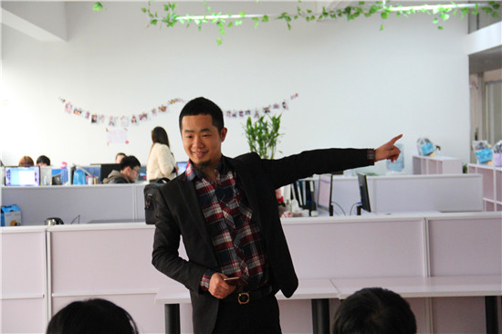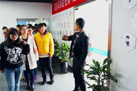 ,谷雨总经理便是之一。谷雨校友首先带领同学们参观了公司办公室,从奖牌荣誉墙到员工工作处再到会议室,“备战双11”,“打败无锡”等口号随处可见,谷雨校友说:“这些口号,不仅能激励我们时刻处在战斗状态中,保持我们的活力;也是我们奋斗的目标。”